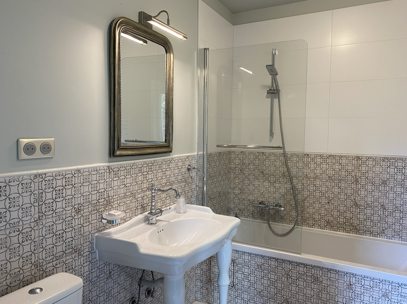 Französischer Lebensstil für dieses Zimmer, das historische Vergangenheit und modernen Komfort vereint.