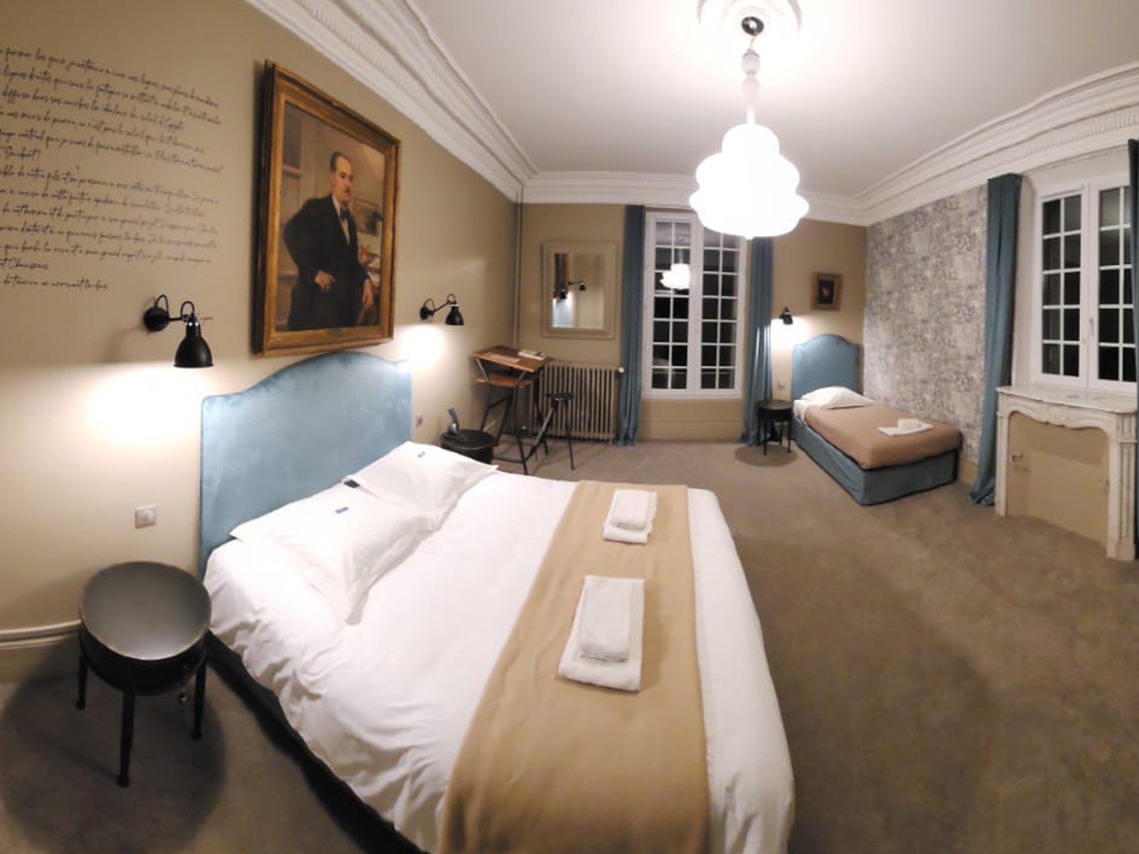 Französischer Lebensstil für dieses Zimmer, das historische Vergangenheit und modernen Komfort vereint.